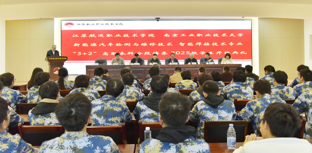 11月6日下午,江苏航运职业技术学院(下称江苏航院)与我校合作的新能源汽车检测与维修技术、智能焊接技术专业“3+2”高职本科分段培养项目,于江苏航院崇德楼五楼会议室举行2025级新生开班典礼。我校教务处合作项目督学陈桃源、交通工程学院院长王文凯、副院长陈加国、机械工程学院副院长吴修娟及相关专业负责人,江苏航院纪委书记朱宝及教务处、交通工程学院、船舶与海洋工程学院负责人、教师代表和新能源3251班、焊接3251班全体学生参加典礼。