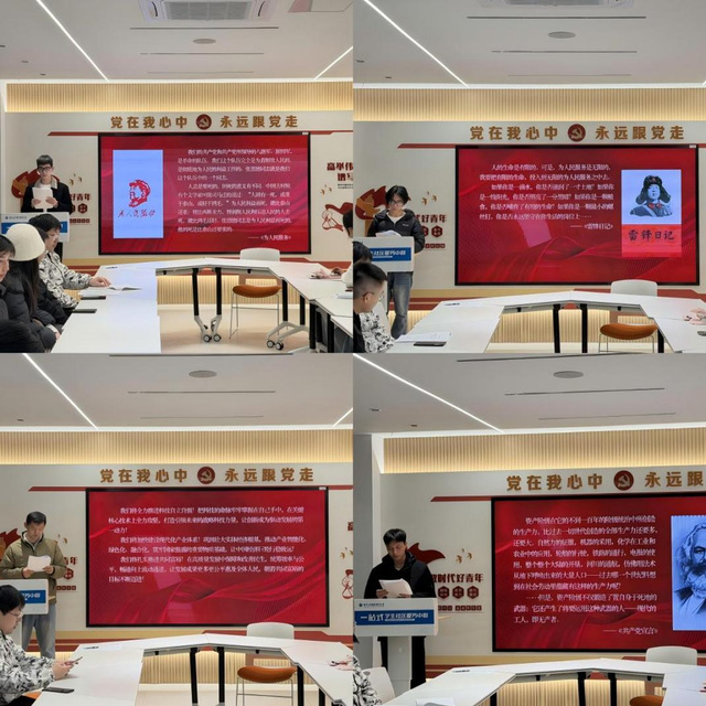 学生党支部结合青年学生特点,选取《共产党宣言》《可爱的中国》《雷锋日记》《执政为民:孔繁森的家信》等经典篇目。学生党员赵欣阳以《可爱的中国》开篇,深情演绎引发全场共鸣。《沁园春·雪》《青春中国》等篇目经同学们铿锵或温情的演绎,传递出豪迈气魄与奋进力量。