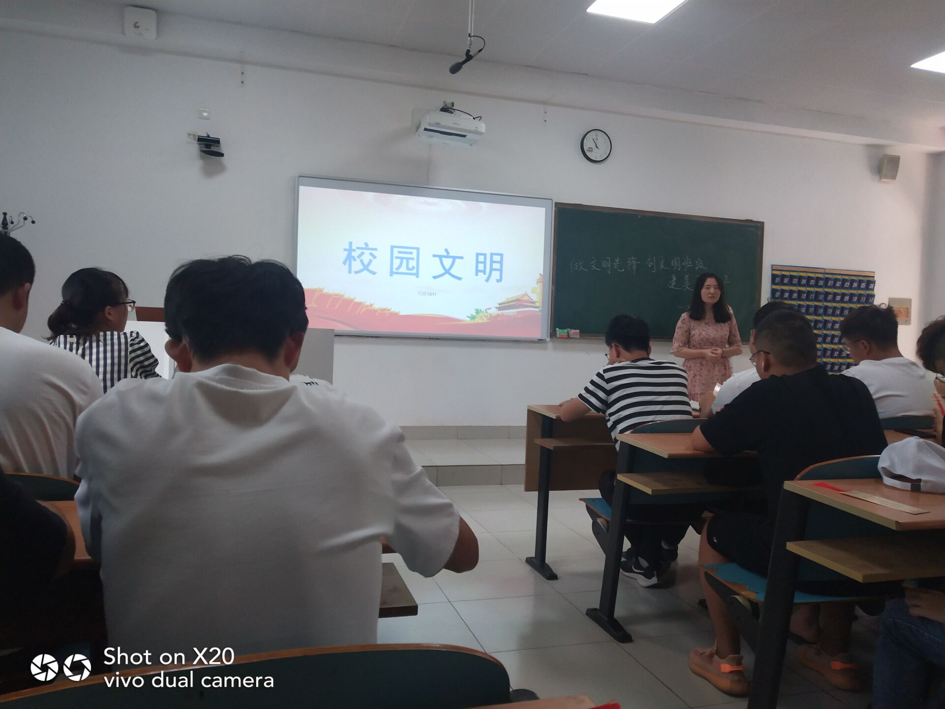 文明是一种态度,文明在于细节。在主题班会上各班用演讲、小组讨论的形式,用丰富的事例生动形象地诠释文明,并通过互动交流了解到容易被忽视的文明行为。活动期间正值教师节,大家在班会上纷纷对老师送上了教师节祝福,表达了对老师的感激之情。