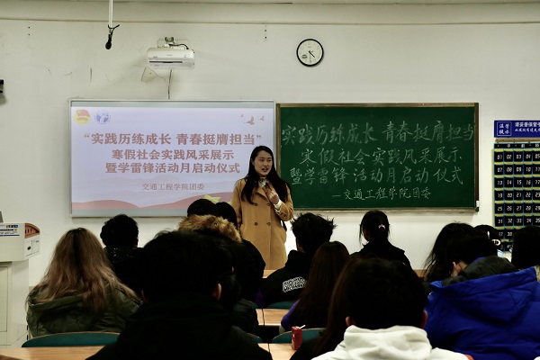 为深入学习宣传贯彻党的二十大精神,贯彻落实习近平总书记关于青年工作的重要思想,深化实践育人成效,发挥优秀社会实践活动示范引领作用,鼓励同学们积极投身实践,交通工程学院团委于3月1日中午12:20在乐群楼202开展寒假社会实践风采展示暨雷锋月活动启动仪式,学院团委书记周嵘、院青马班成员、学生干部和各实践团队学生出席了此次活动。